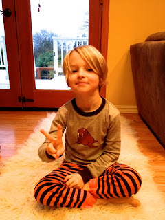 Wren told me to post this on the blog. He said "look what I can do!" He is very flexible. He can drape himself in a backbend over the couch. Almost do the splits, first thing in the morning, cold, in his pjs and has double jointed fingers. He loves to show how he can pop his thumb joint out like I can (but Frost and Josh cannot). He is working hard to make a crook in the tip of his index finger (as I can!) and likes to bend his tongue in funny shapes.
